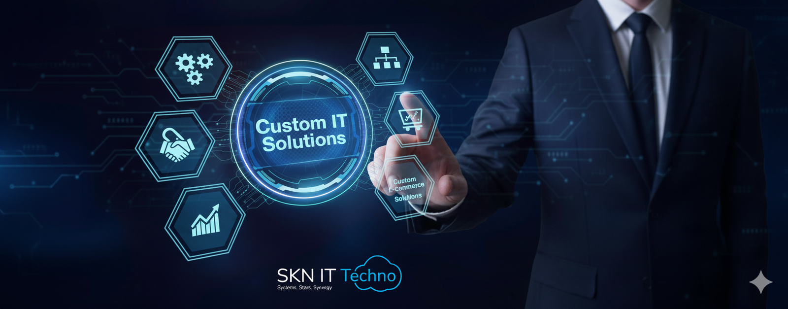 At SKN IT Techno, we understand that every business is unique, and so are its challenges. That’s why we don’t believe in one-size-fits-all strategies. Our Custom Solutions are designed to address your specific requirements, helping you achieve efficiency, scalability, and growth.
